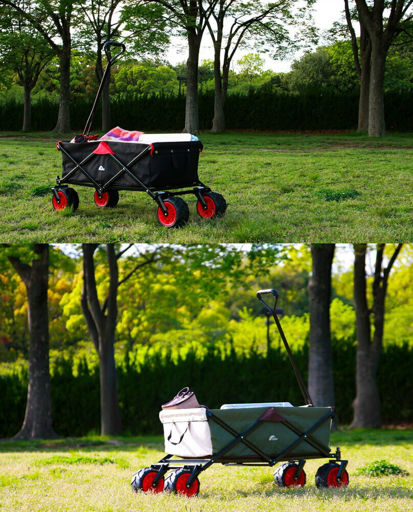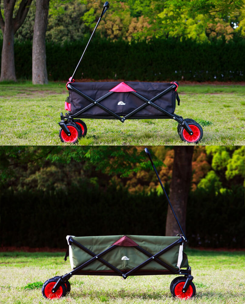 サイズ [展開時]約W112xL51xH120(cm)m [収納時]約W22xL51xH76(cm) ワゴン容量 約90L ワゴン内寸 約W82xL45xH25(cm) 重量 約10.8kg 積載重量 約60kg 材質 [フレーム]スチール[カバー]ポリエステル[タイヤ]ポリウレタン <注意>※商品の色は、ご使用になるモニターや、設定によって若干の違いが発生する場合があります。