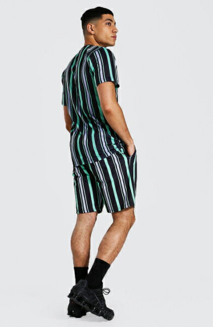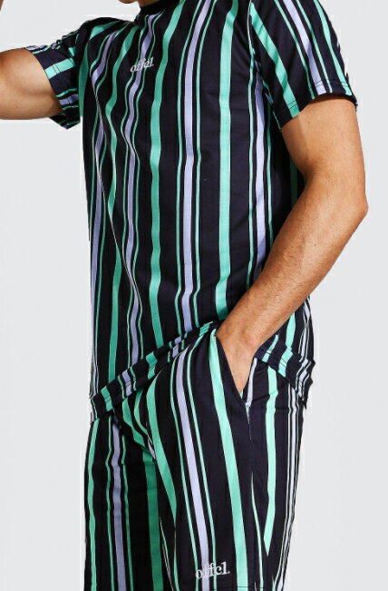 boohoo(ブーフー) Offclスリムフィット ストライプTシャツとショートセット トラックスーツ トラックスーツ セットアップ 上下 スウェット インポートブランド ランニング ジム スポーツ 小さいサイズ 大きいサイズあり メンズ ファッション フィットネス