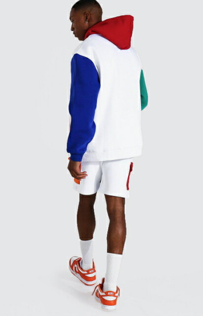 boohoo(ブーフー)特大 カーゴ カラーブロック ショート トラックスーツ セットアップ 上下 スウェット インポートブランド ランニング ジム スポーツ 小さいサイズ 大きいサイズあり メンズ ファッション フィットネス