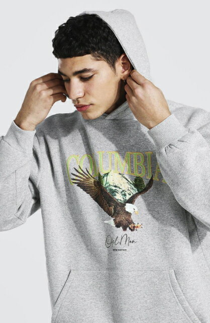 boohoo(ブーフー) 特大 イーグル プリント フード付き トラックスーツ セットアップ 上下 スウェット インポートブランド ランニング ジム スポーツ 小さいサイズ 大きいサイズあり メンズ ファッション フィットネス