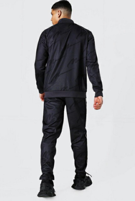 boohoo(ブーフー) リピート マン ファネルネック テープ トリコット トラックスーツ トラックスーツ セットアップ 上下 スウェット インポートブランド ランニング ジム スポーツ 小さいサイズ 大きいサイズあり メンズ ファッション フィットネス