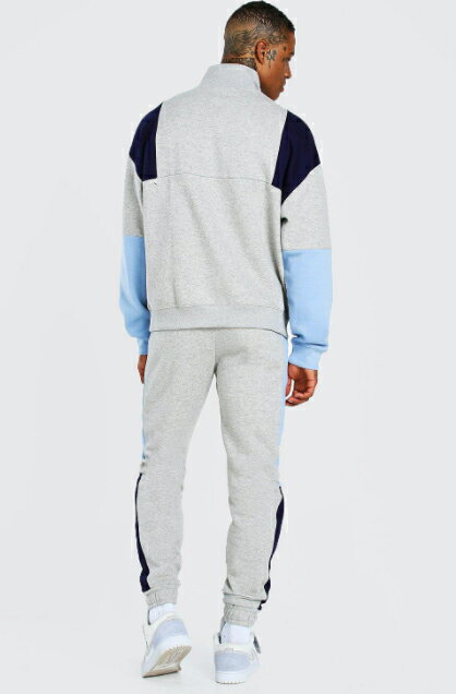 boohoo(ブーフー) ルーズフィット カラーブロック ハーフジップ トラックスーツ セットアップ 上下 スウェット インポートブランド ランニング ジム スポーツ 小さいサイズ 大きいサイズあり メンズ ファッション フィットネス