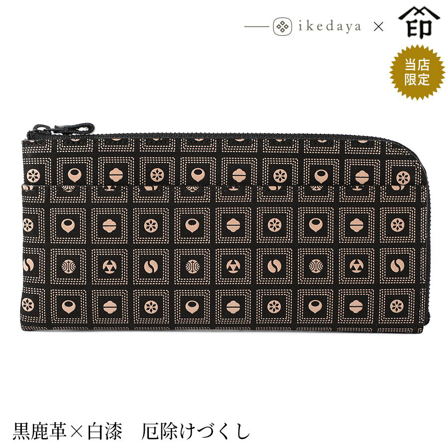 印伝 長財布 印傳屋 甲州印伝 財布 9854 半周り束入れ黒地×白漆 厄除けづくし 池田屋だけのオリジナル印傳★和風 和装 贈り物 ギフト プレゼント 革小物 和小物 伝統工芸品 上原勇七