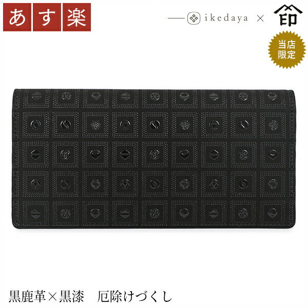 【あす楽】 印伝 長財布 印傳屋 甲州印伝 財布 2103 束入れ黒地×黒漆 厄除けづくし 池田屋だけのオリジナル印傳★和風 和装 贈り物 ギフト プレゼント 革小物 和小物 伝統工芸品 上原勇七